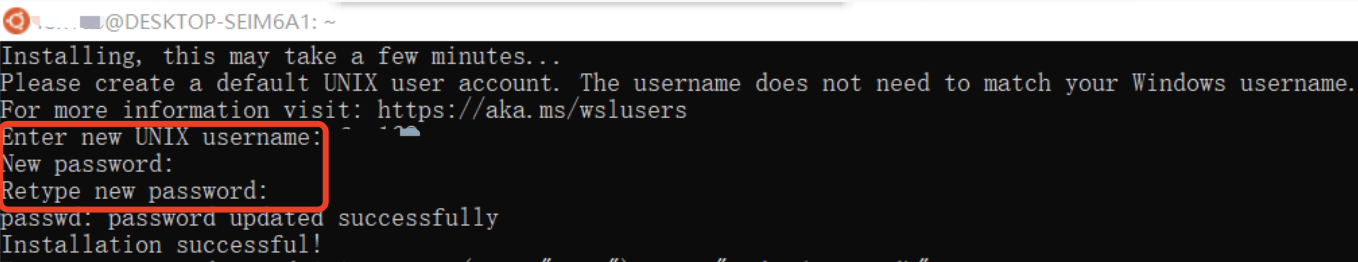 cmd下执行wsl登录刚刚设置的用户。若需使用 root 身份,执行su root并输入刚刚设置的密码。更新WSL