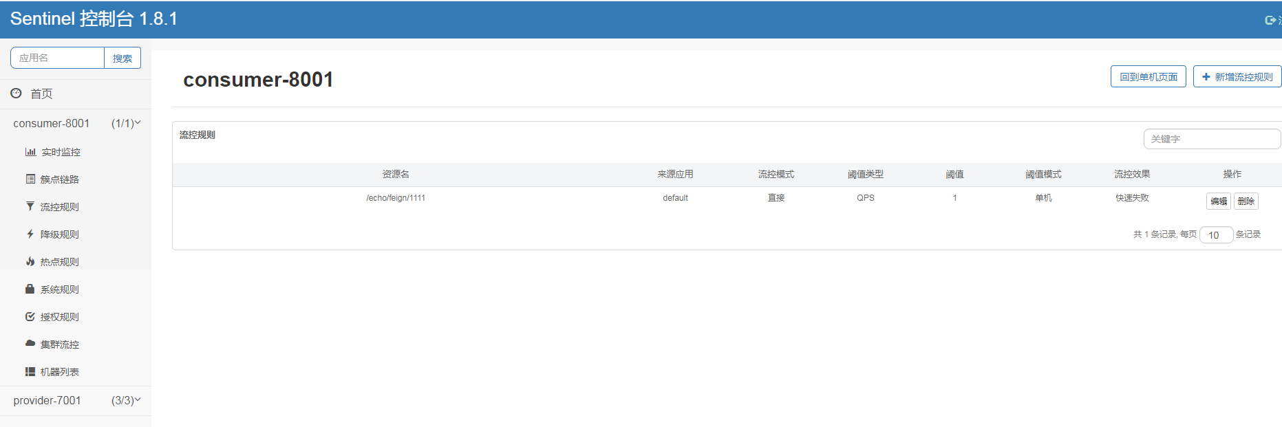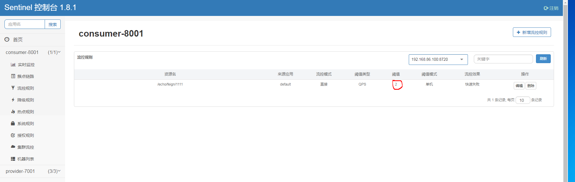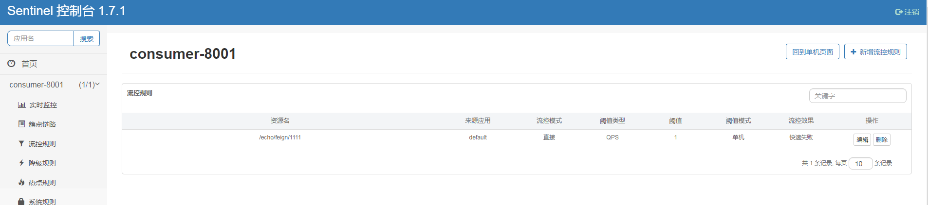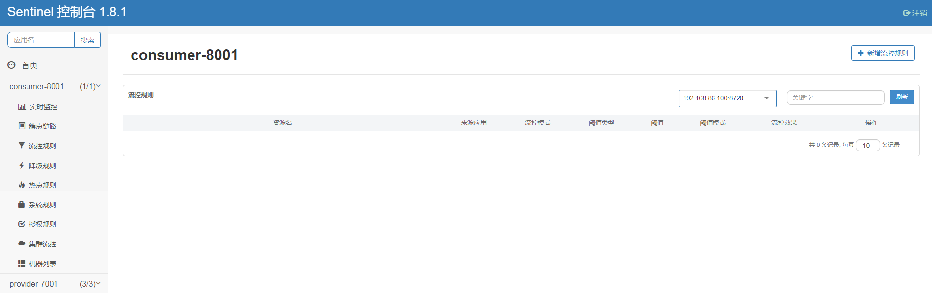 查看consumer-8001-flow-rules详情