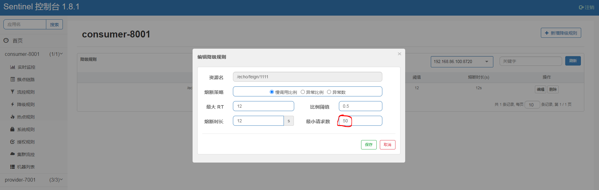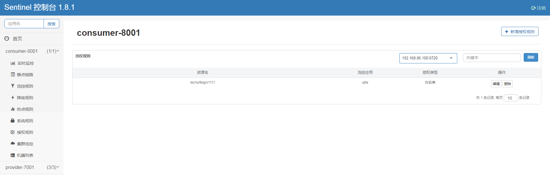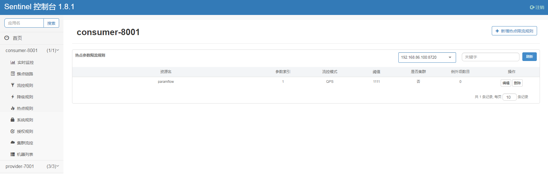 查看consumer-8001-flow-rules详情