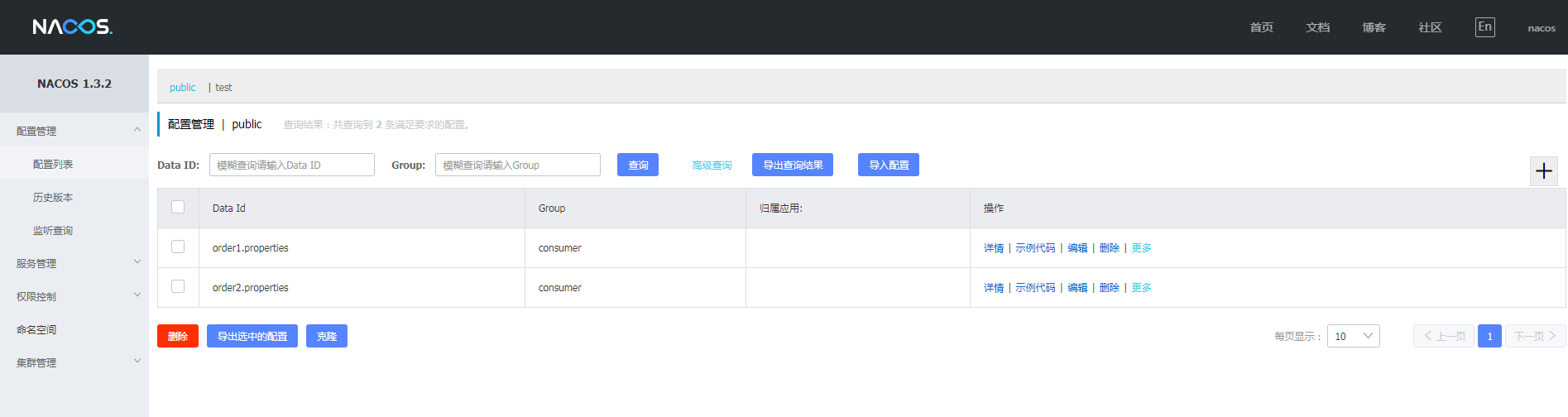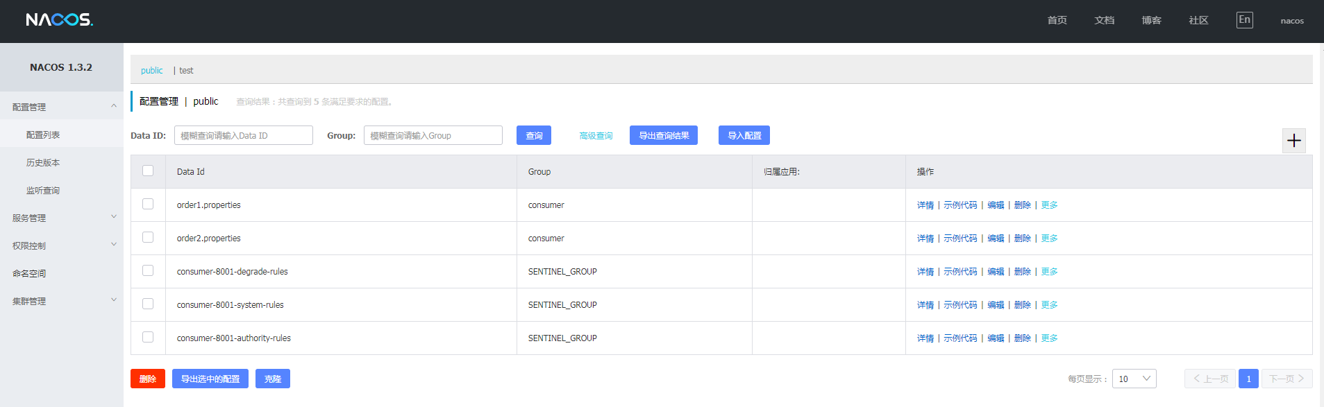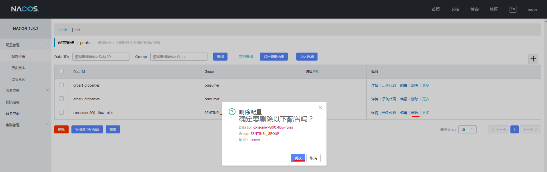 1.10.3 在nacos中删除配置