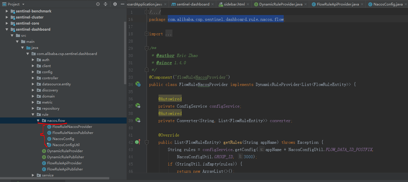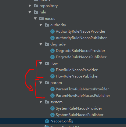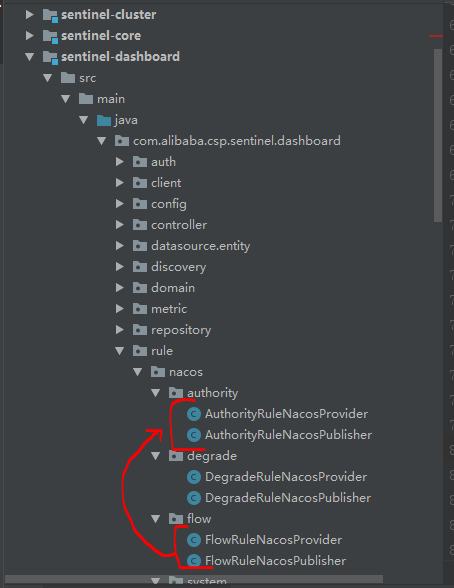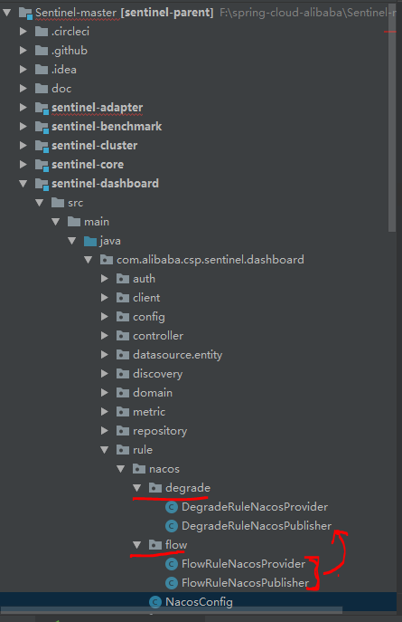 将sentinel-dashboard项目中,如下图test中的nacos目录全部移动到man中的rule包下,目录如下图: