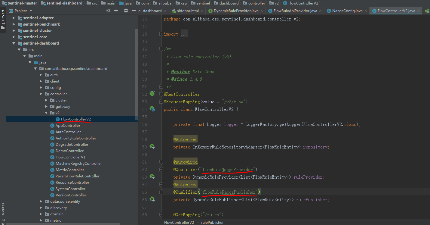 修改 com.alibaba.csp.sentinel.dashboard.controller.v2.FlowControllerV2.java 如下