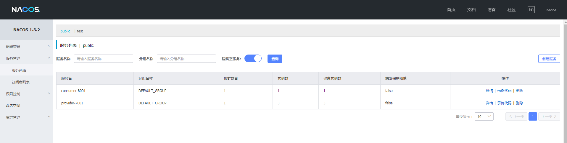 查看nacos页面