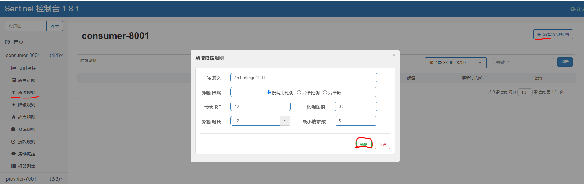 1.10.1 在sentinel中新增流控规则,查看nacos