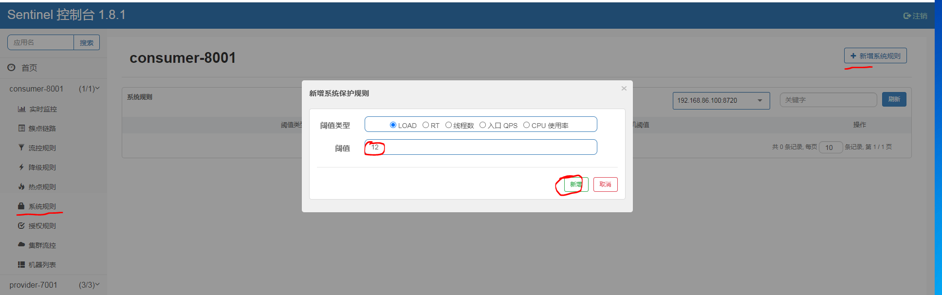 添加流控规则成功: