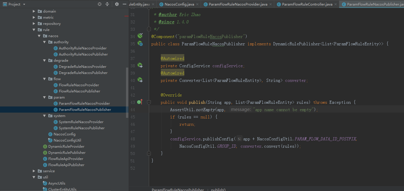 @Qualifier("paramFlowRuleNacosPublisher")