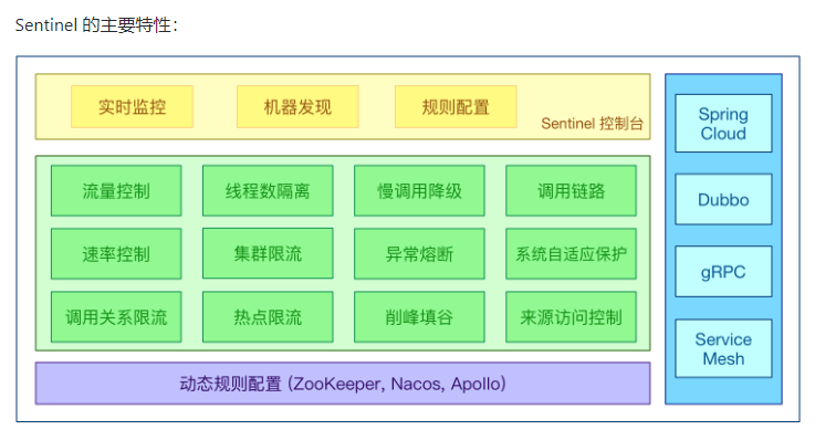 - 核心库(Java客户端)不依赖任何框架/库,能够运行于所有Java运行时环境,同时对 Dubbo /Spring Cloud等框架也有较好的支持。