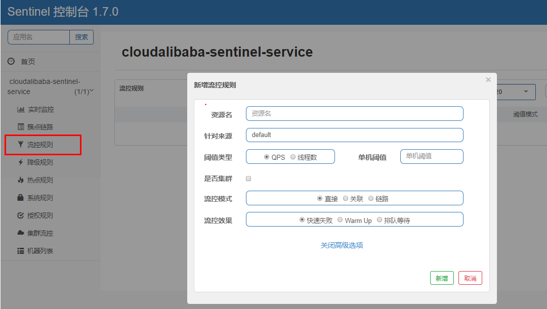 下面来说说sentinel的核心重要操作了,先说这个流控规则,对应于sentinel界面中的这个位置:????????????