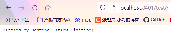 在浏览器中快速多次的访问 localhost:8401/testA,即可看到sentinel的默认错误页面的提示信息。