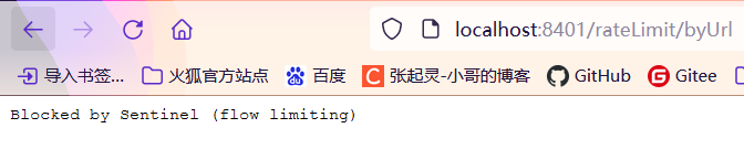 该配置的意思是:当1秒内byResource请求访问超过1次,则进行限流。这里我在@SentinelResource注解中配置了blockHandler属性,当触发限流之后,不再走sentinel默认的限流机制(Blocked by Sentinel),而是走我们自定义的限流方法(如下图)。