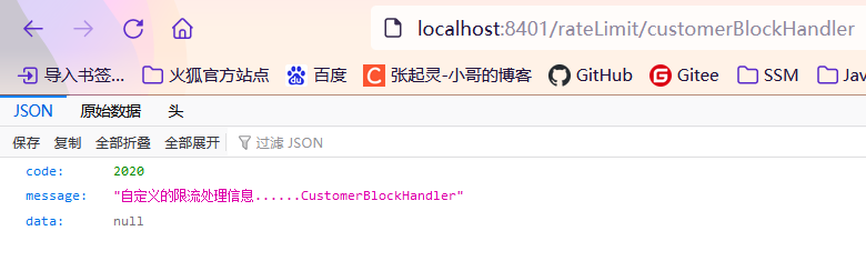 首先对应8401模块的controller中的 /rateLimit/customerBlockHandler 请求,全局统一处理限流方法对应的是 handler 包下的 CustomerBlockHandler 这个类。