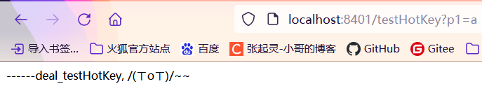 下面我们到浏览器中访问 localhost:8401/testHotKey,后面要加上参数p1,1秒访问1次是不会出问题的,但是1秒内多次刷新访问,就会出现如下图结果,页面信息为testHotKey方法的降级方法中的内容。