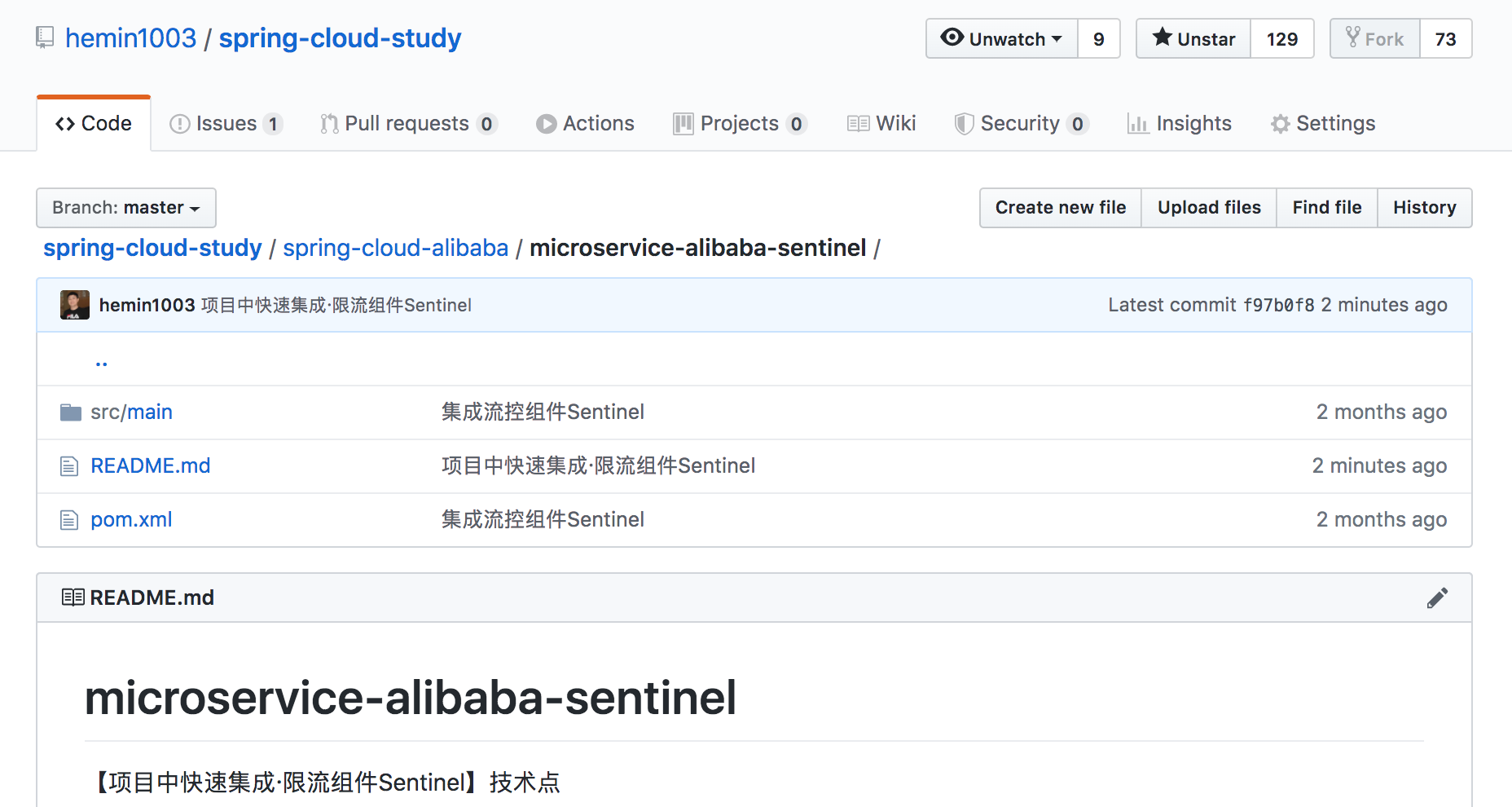 https://github.com/hemin1003/spring-cloud-study/tree/master/spring-cloud-alibaba/microservice-alibaba-sentinel