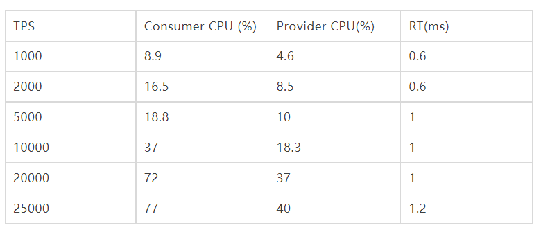 我们使用了 3 台相同规格机器,一台作为Server(运行一个 triple-server),一台作为Client(运行一个triple-server 和triple client) ,一台作为施压机向 Client 发起针对整个链路的调用施压,并进行数据记录,记录rt、真实 tps 以及client 和 server 的 CPU 占比数据。