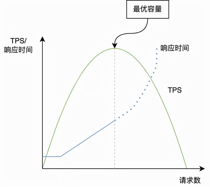 容量评估是评估当前服务提供者状态以保持最优请求队列长度。容量评估关注的两个核心指标是 TPS 和延迟,TPS 评估系统的每秒处理事物的速度,延迟反映用户等待时间。在评估服务端容量时,要平衡系统吞吐率和用户等待时间两者之间的关系,理想状态下在系统吞吐率尽可能大的情况下用户延迟尽可能小。