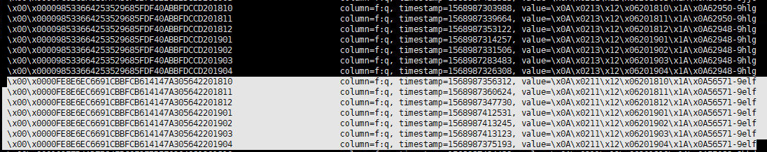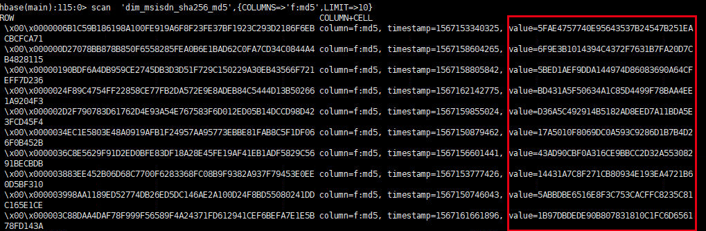 入Hbase的数据格式,每个字段都有16进制 x0开头