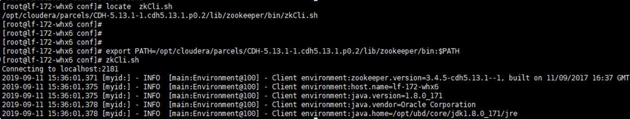 export PATH=/opt/cloudera/parcels/CDH-5.13.1-1.cdh5.13.1.p0.2/lib/zookeeper/bin:$PATH