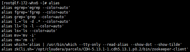 alias zkCli.sh='/opt/cloudera/parcels/CDH-5.13.1-1.cdh5.13.1.p0.2/bin/zookeeper-client'