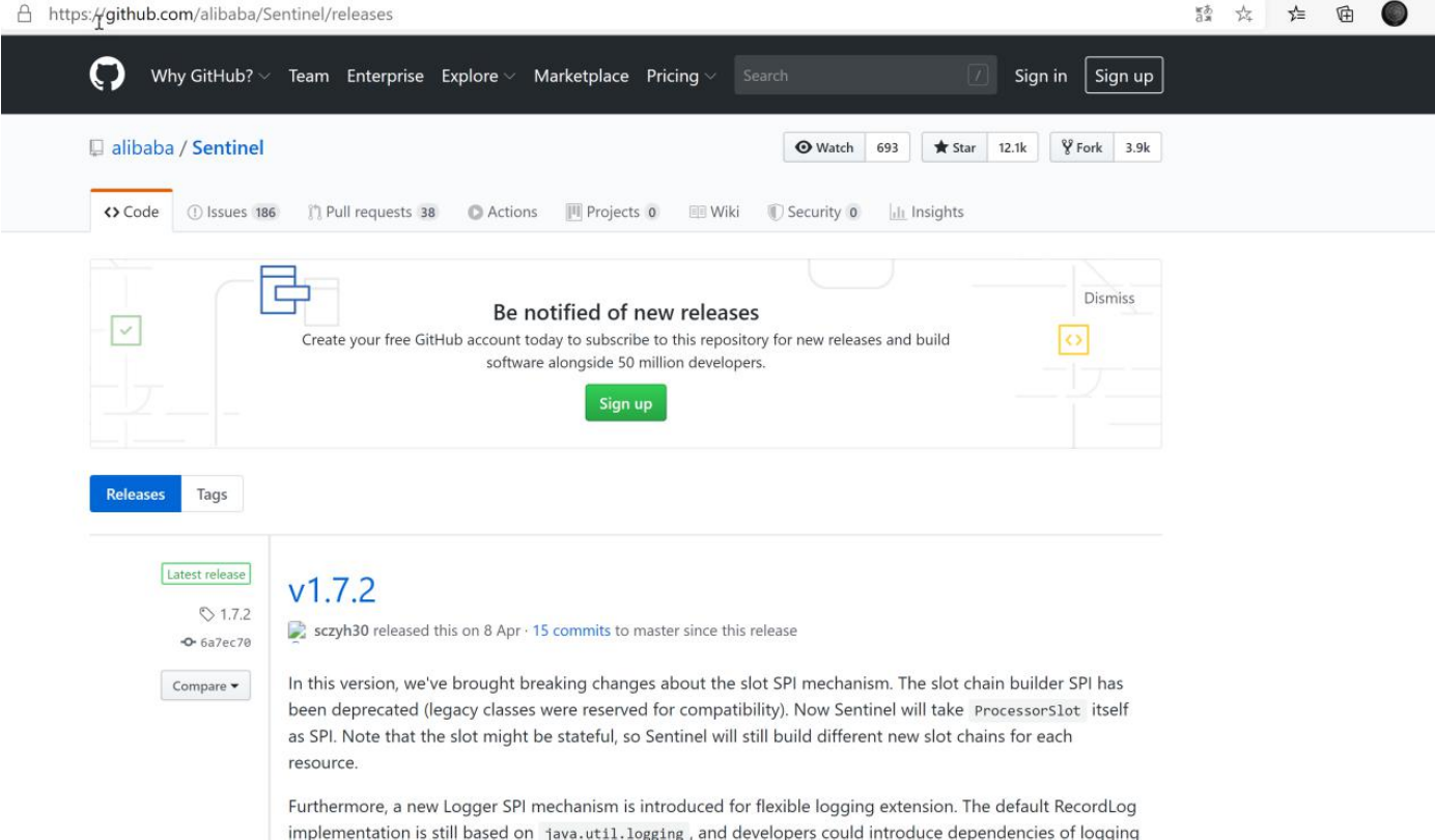 访问:https://github.com/alibaba/Sentinel/releases