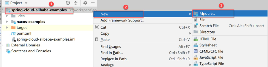 Parent:选择 spring-cloud-alibaba-examples