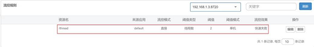 上面的配置含义是:如果/exception 的 QPS 大于 5,并且每秒钟的请求异常比例大于 0.5的话,那么在未来的 3秒钟(时间窗口)内,sentinel 断路器打开,该 api 接口不可用。