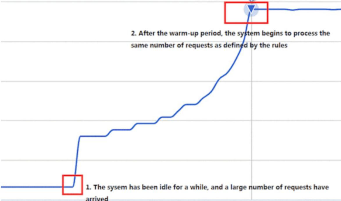 前期在预热环境,突然的高 QPS 会导致系统直接拒绝访问,慢慢地,开始大量的介绍新的请求。