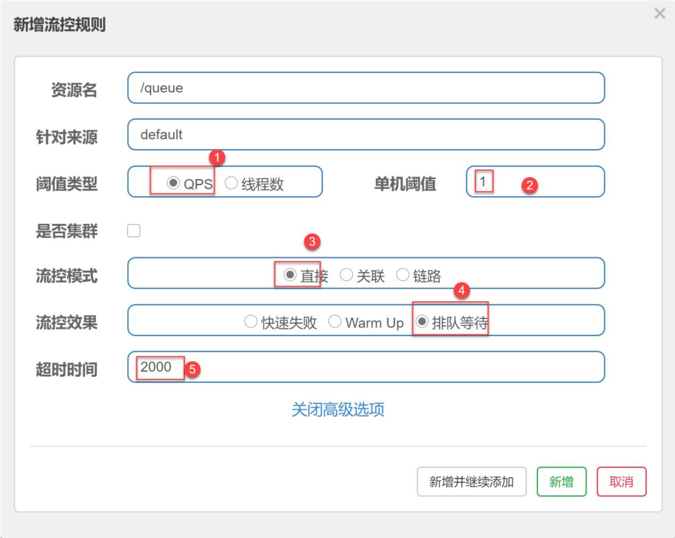 给 queue 添加一个限流规则: