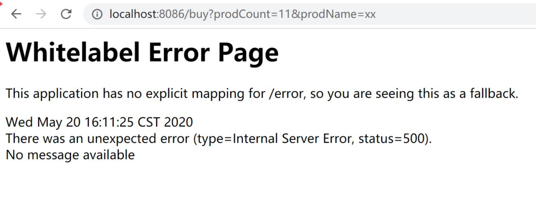 当策略为异常数时表示:当指定时间窗口内,请求异常数大于等于某个值时,触发降级。继续使用上面的接口测试。