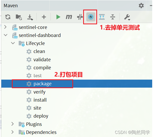 运行IDEA中的maven插件,编译和打包修改好的Sentinel-Dashboard: