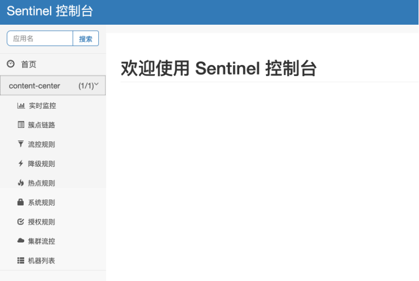 此时我们再次访问微服务(内容中心content-center),在Sentinel的控制台中就可以看到信息(刷新浏览器)