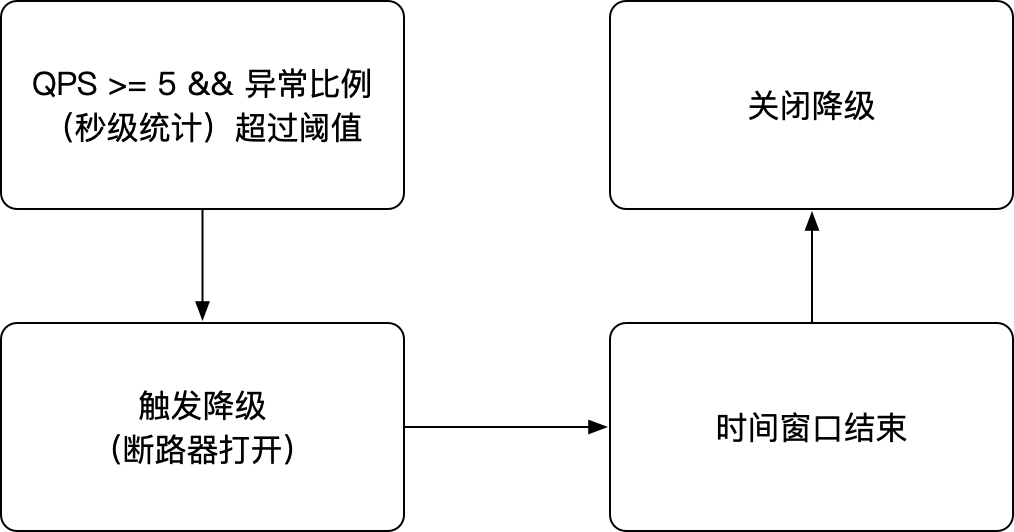 当某个方法每秒调用所获得的异常总数的比例超过设定的阈值时,该资源会自动进入降级状态,也就是在接下来的一个固定的时间窗口内,对这个方法的调用都会自动返回。