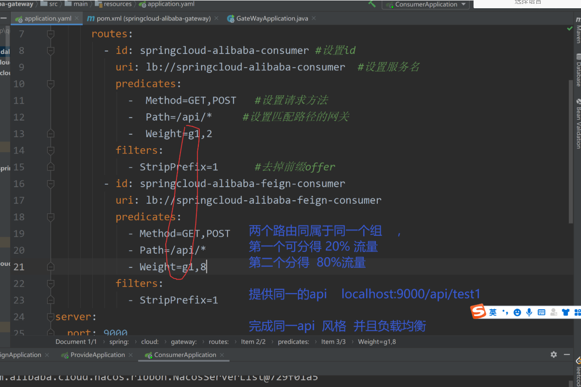 uri: lb://springcloud-alibaba-consumer #设置服务名
