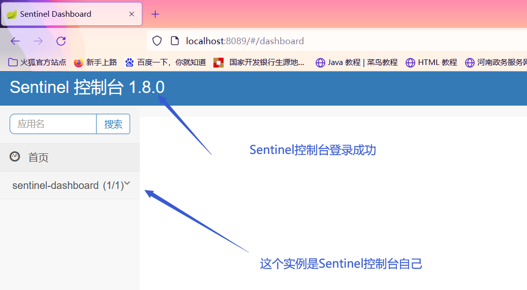 java -Dserver.port=8089 -Dcsp.sentinel.dashboard.server=localhost:8089 -Dproject.name=sentinel-dashboard -jar sentinel-dashboard-1.8.0.jar
