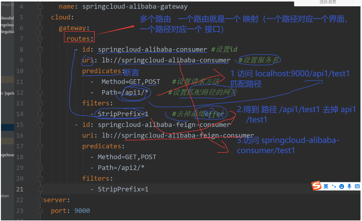 - Path=/api1/* #设置匹配路径的网关