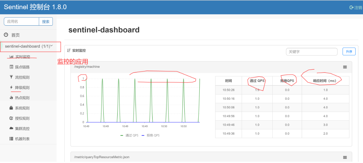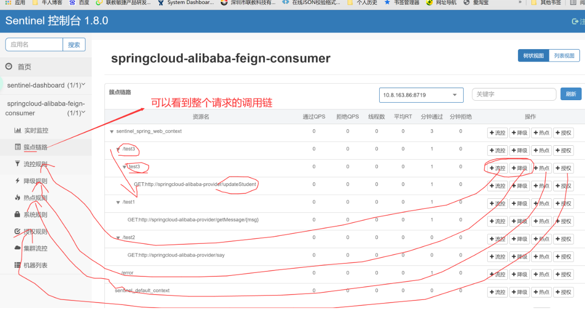 5.重新启动feign-consuer,多访问几次接口,在哨兵控制台就可以看到监控的流量