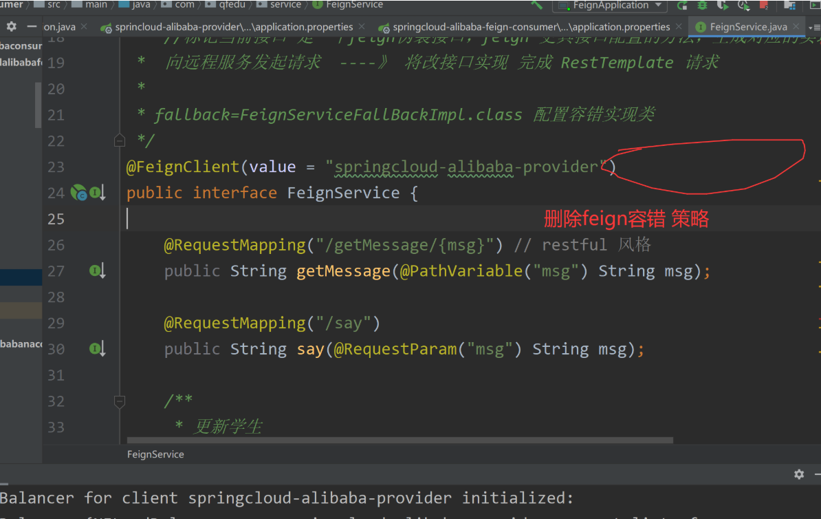 3.在FeignTestcontroller中使用哨兵配置容错策略