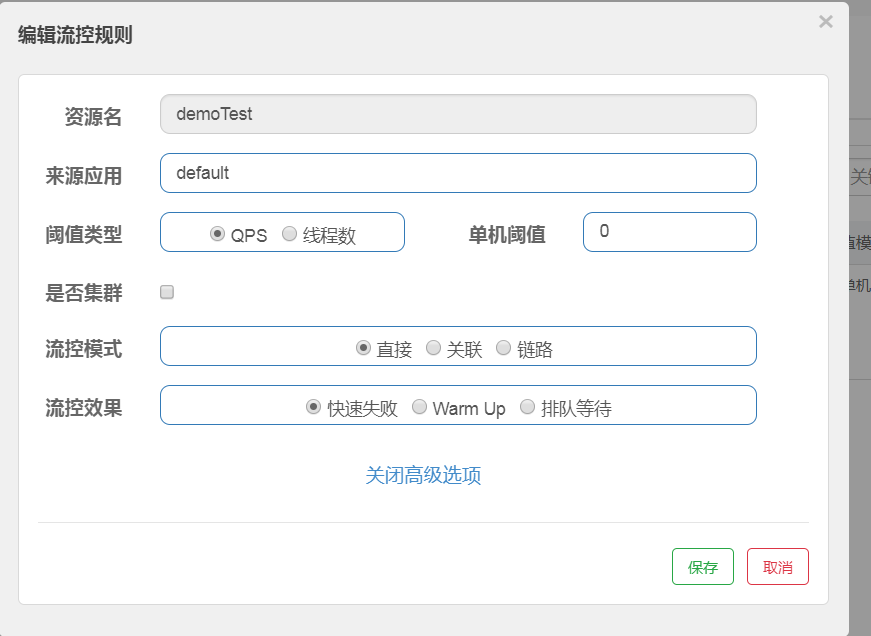 下面我们再来配置一个降级规则,在微服务中,各个服务之间的调用非常频繁,之前我们可能会采用hystrix的配置来限制服务间调用的timeout时间,现在我们用sentinel界面上设置限流时间。