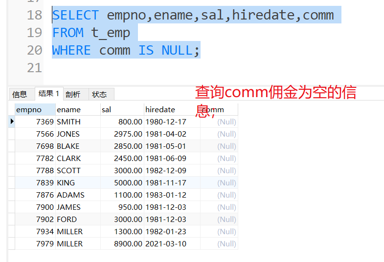 判断为空不为空,要使用【IS NULL】或者【IS NOT NULL】;;;千万不要使用=null或者!=null