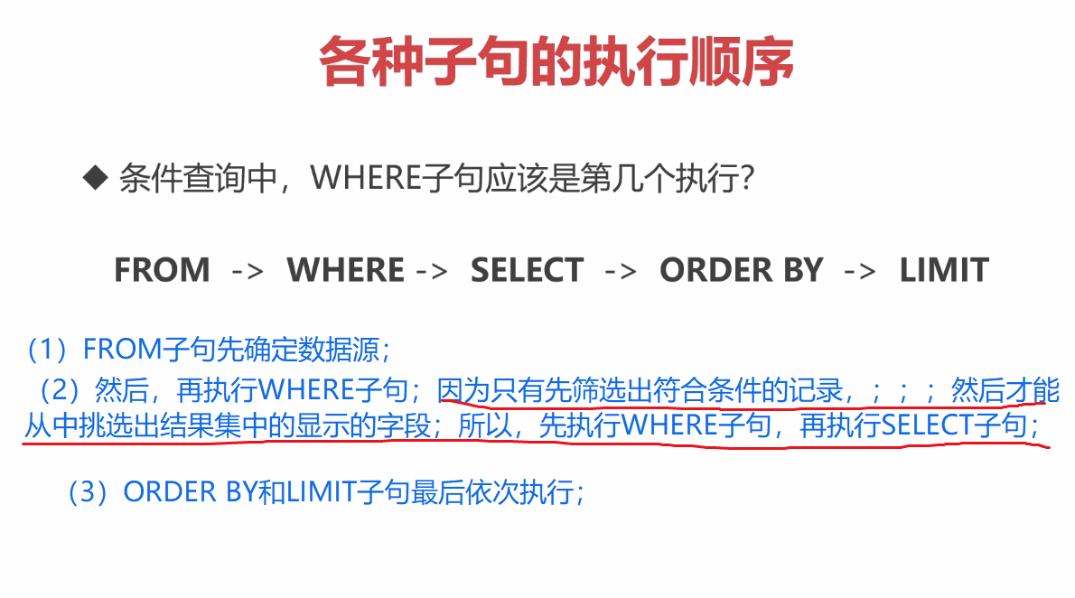 以上就是忐忑短靴最近收集整理的关于数据库的基本查询三:【WHERE子句】条件查询; 一:条件查询:【WHERE】子句二:【WHERE】子句的注意事项三:【WHERE】子句在各种子句中执行的优先级的全部内容,更多相关数据库内容请搜索靠谱客的其他文章。