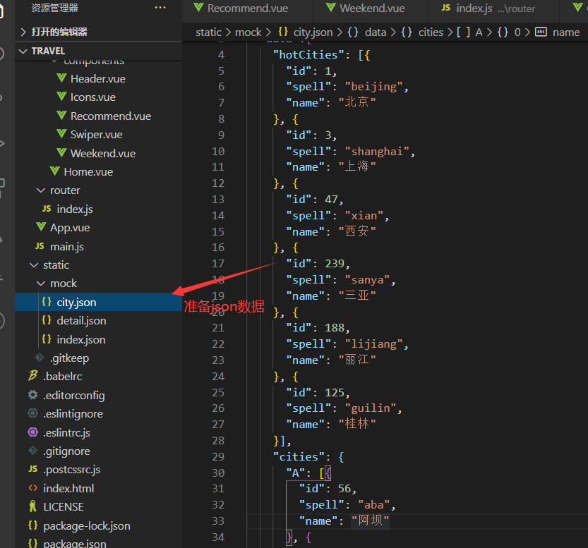 首先在static准备json文件