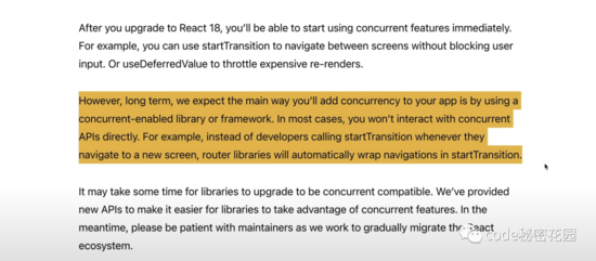 React 官方在官网中提到,大多数情况下我们都不会和这些并发渲染的 API 直接交互,这让我们很难判断 React 18 究竟是不是一个革命性的版本。