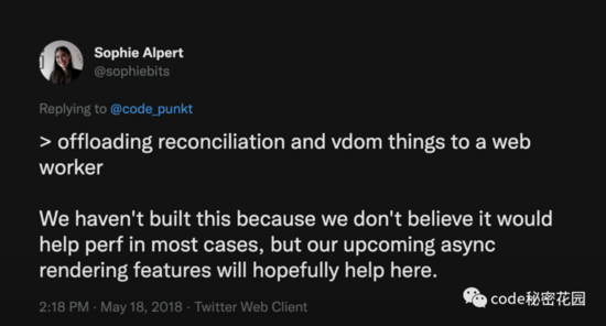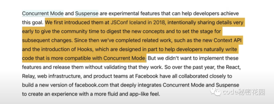 然而,这种说法并没有持续多久,很快它就会 concurrent mode 替代了。