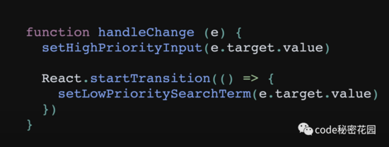 当有一些更新被包裹在 startTransition 下时,React 将已较低的优先级去处理这些更新,从而优先去处理像用户输入这样更高优先级的更新。