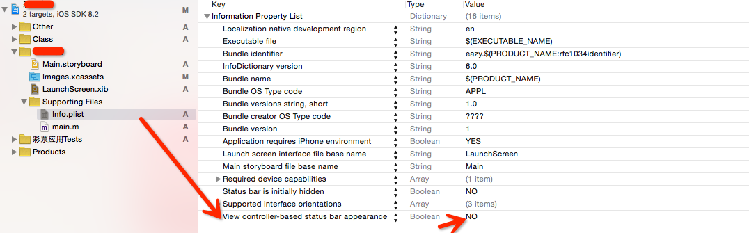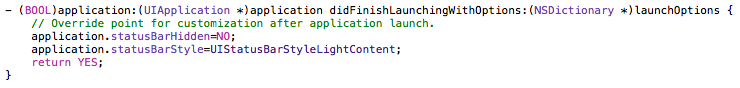NO:通过AppDelegate.m进行设置状态栏