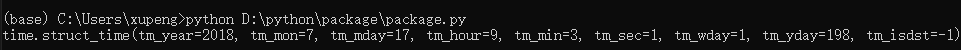 struct_time(年,月,日,时,分,秒,一周的第几日(0-6),一年的第几日(1-365),夏令时)