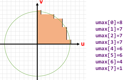 umax[v] = cvRound(sqrt(15 * 15 - v * v));