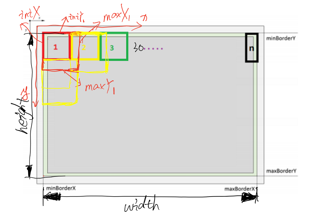 //在坐标范围内挨个像素遍历,实际是一次遍历2个
