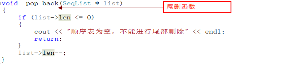 尾删的话,顺序表不为空,直接让seqlist->len--;就行,删除不一定非要把该数据给删除了,只要让len--,如果再要插入直接把以前数据覆盖了