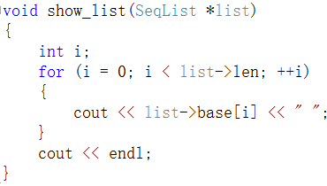 显示函数:循环解决问题,从头输出到尾,循环结束条件是i < list->len。