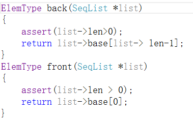 返回一个元素类型,用到断言(顺序表不空list->len > 0),最后return头部或者尾部元素